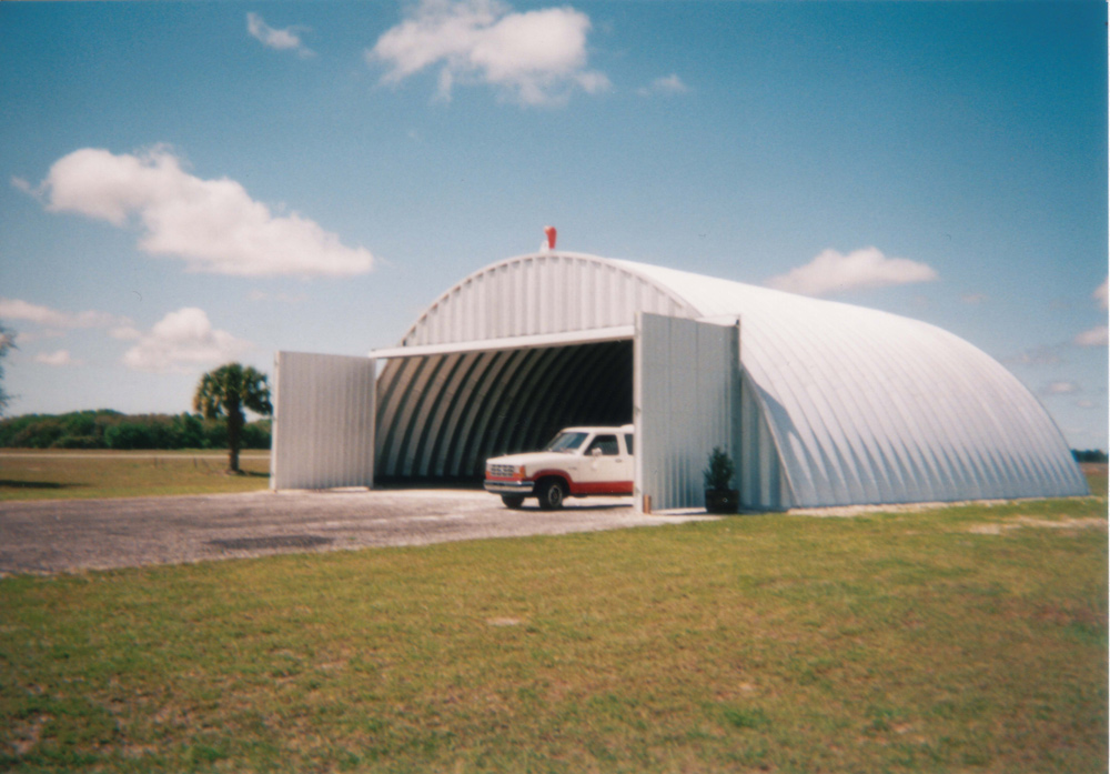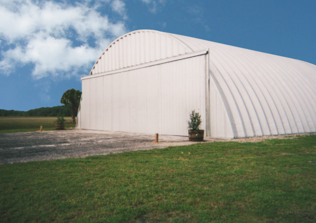 Steel airplane hangars manufactured for airplane storage facilities by Curvco Buildings offer both economical and durable protection for your aircraft. The efficient design of Curvco’s steel airplane hangars means clearspan widths of up to 140 feet and no limits on the length. Since there are no interior support posts or beams, it allows the greatest use of the floor space in multi-plane storage uses. The absence of any trusses in the roof also prevents birds or rats from nesting above the aircraft and your hangar stays clean.