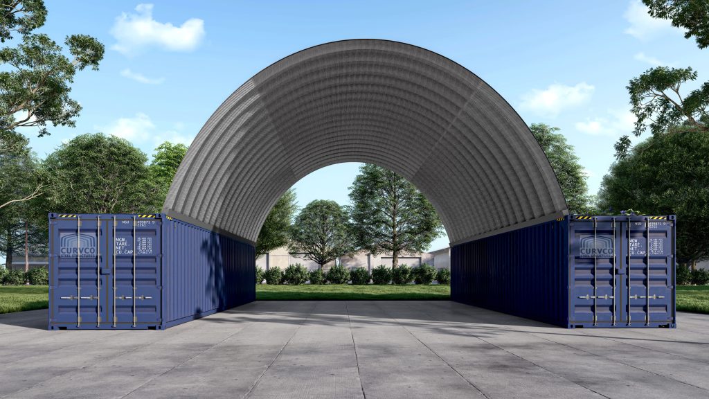 Shipping Container Roofs are made of 100% American Steel from an American factory here in the United States. The steel arches can range from 14-22 gauge. They are coated in Galvalume made from aluminum, zinc, and silicon, making it more resistant to corrosion. It has an impressive strength-to-weight ratio, which derives from the arch panels being bolted together with strong overlapping panels.