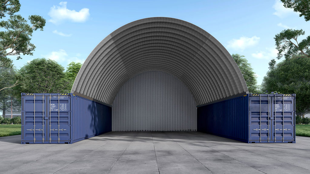 The container kits can be a permanent or temporary structure depending on how you use it. Once bolted together, the building can remain for the duration of your projects. Once the project is complete, the container roof can be unbolted, stored in the containers to use at a later time. If you decide to use these on private property as a storage building for the long term, the durability of these structures will prove to be exactly what you need.