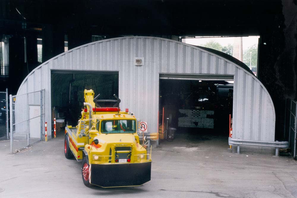Curvco Steel truck garage buildings are the ideal solution when used for truck repair shops and truck storage buildings. With the rising cost of fuel and the competitive environment in the industry, trucking companies need economical shelter to protect and repair their vehicles in. Our arch style truck garage buildings are totally prefabricated for self-construction and ideally designed for different truck applications.
